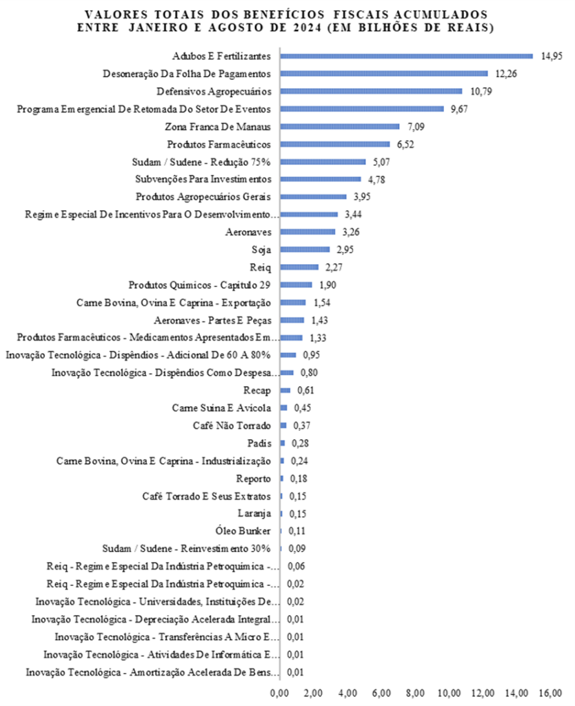 O Ministério da Fazenda (MF) mostrou que o total de benefícios fiscais no país às empresas entre janeiro e agosto de 2024 acumulou R$ 97,7 bilhões. Conforme o Anexo 1 ao final desse texto mostra, esses benefícios envolvem diferentes temas, uns mais meritórios, outros menos; uns mais voltados a impulsionar o desenvolvimento nacional e regional e outros mais voltados a interesses setoriais. Duas propostas poderiam ser pensadas: a) condicionar a desoneração da folha de pagamentos, que representa 12,5% do total de benefícios, à redução da jornada; b) revisar os demais benefícios, analisados caso a caso, incluindo como condicionante para sua manutenção a redução da jornada.