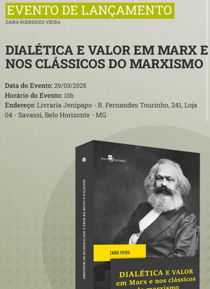 “A obra Dialética e valor em Marx e nos clássicos do marxismo, de Zaira Vieira, se inscreve, por esses motivos, como uma obra de leitura e estudo obrigatórios para o resgate da vivacidade crítica, dialética e revolucionária do pensamento, da obra e do método de Marx,…” (Apresentação)